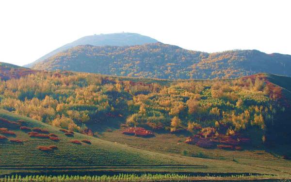 大冷山主峰海拔高1744米,山体气势磅礴,恢弘大气,矗立顶峰,周边景象尽收眼底,北面的锡林郭勒草原像凝固的大海在涌动,南面农区阡陌纵横气象万千。大冷山层峦叠嶂的群山,像绿色巨龙自东北向西南伸展;松涛激荡的林海,就如一幅硕大的山水画,远眺山环雾绕,近观鲜花漫野,彩蝶纷飞,鹿鸣鸟唱,时时诉说着这是神秘的史话与传说。一入初秋,山山竞秀,云林尽染,色彩斑斓,万紫千红,美不胜收。山脚下的大冷山水库占地25公顷,野鸭、野鹅等野禽在这里生息繁衍,水中鱼翔浅底。